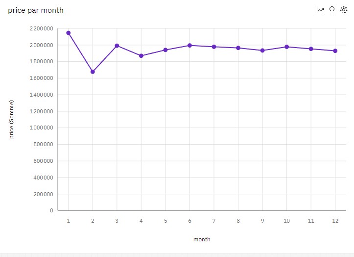 Les données de l'entrepôt de données sont ensuite récupérées, afin de créer un tableau de bord, avec plusieurs graphiques soulignant l'évolution des données nécessitant un suivi.